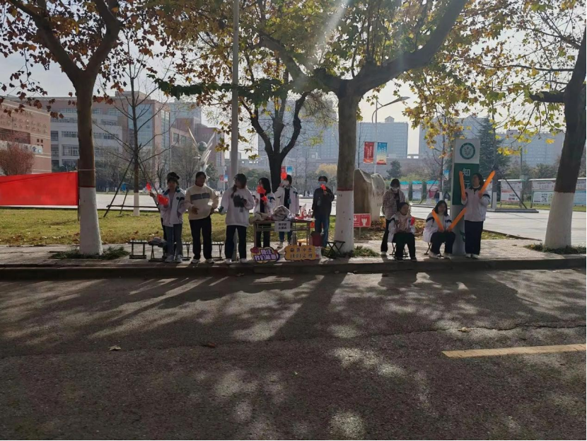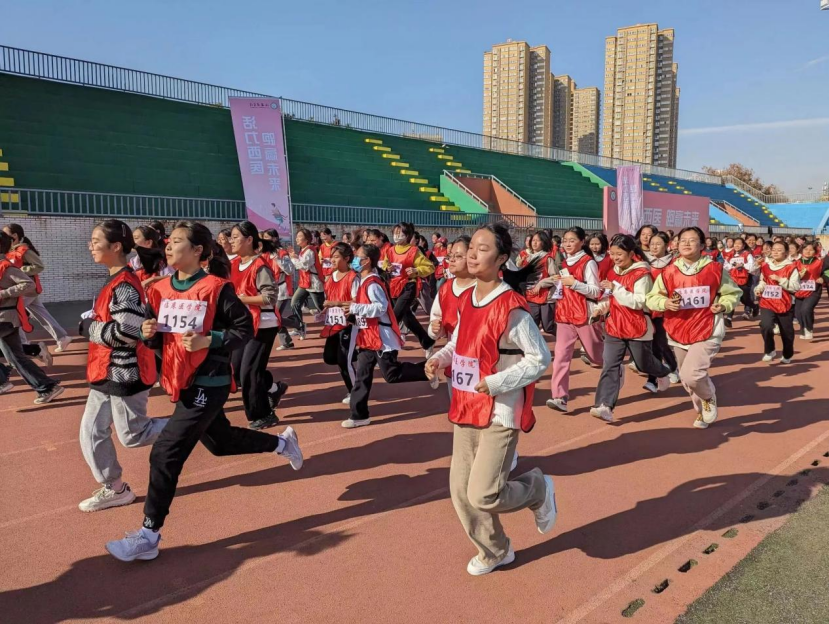 随着裁判发号枪的打响,第一队的参赛选手们沿着规划好的赛道从操场的西南门出发转向校园,在秋末冬初的季节里,展示着独属于青年人的活力。在赛道的沿途,各位志愿者在加油点早早倒好了水,准备好了各类补给,为各位运动员呐喊助威。