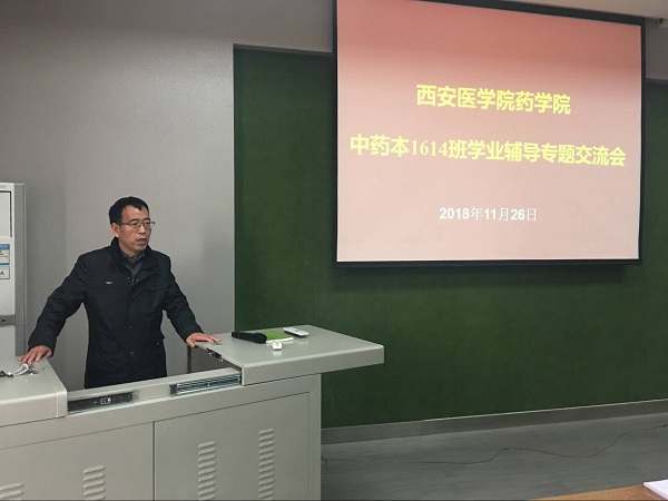 随后,药剂教研室冯锁民教授对学生提出了几点要求。冯锁民教授表示,后期以学业辅导团队的形式对中药本1614班进行学业辅导,要求学生将自己的学习情况、学习中存在的困难、各门课程成绩进行书面说明,学业辅导团队针对每个同学的情况进行单独辅导,并提出了在班上组建科研兴趣小组的设想,希望同学们积极参与。