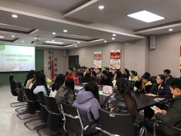 在全国硕士研究生入学考试即将来临之际,为进一步加强药学院学风建设,鼓励考研学子坚持不懈,沉着备考,12月16日下午,药学院联合江苏豪森药业股份有限公司在药学院会议室举行了“校企合作,助力考研”暖心考研学习用具发放及辅导活动。药学院院长秦蓓,党总支副书记吕忠田、冯永辉,校企合作办老师及考研学生代表参加了此次活动,活动由药学院校企合作办主任闫平主持。
