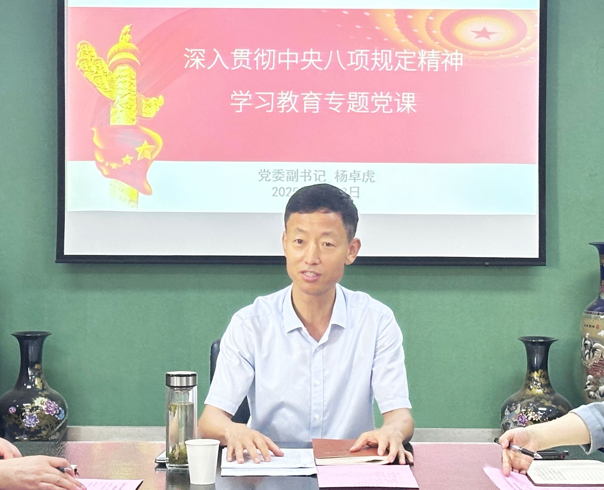 为进一步强化作风建设,凝聚发展合力,5月13日下午,党委副书记杨卓虎巡学旁听药学院理论学习中心组学习,并面向全体教工党员讲授深入贯彻中央八项规定精神学习教育专题党课。药学院党总支书记王黎主持会议。
