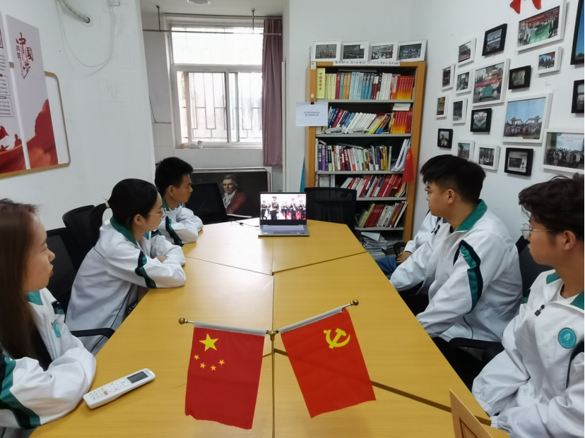 学生在公寓党团活动室观看庆典现场