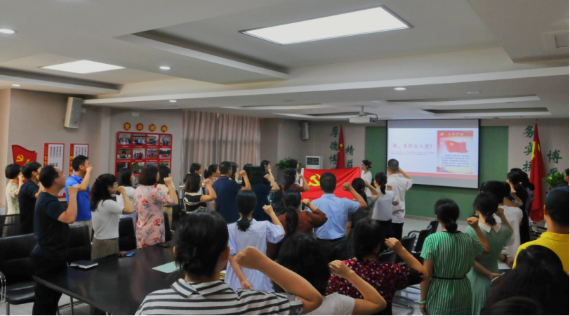 活动第一阶段,全体党员通过一段短视频《你为什么入党?》回顾了中国共产党的初心,接受心灵的净化和洗礼。随后,全体党员面向党旗,举起右手,庄严的重温入党誓词,牢记党员的责任与使命。