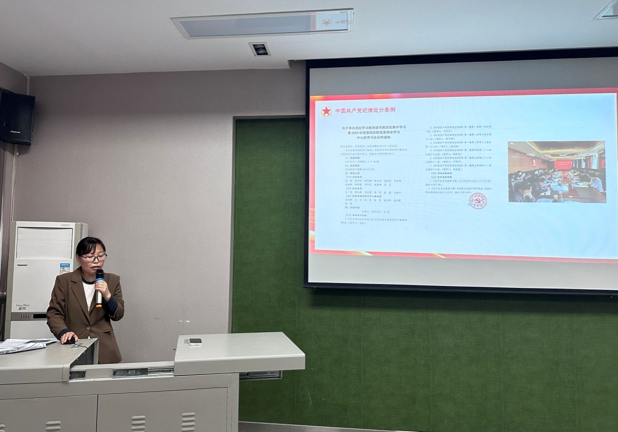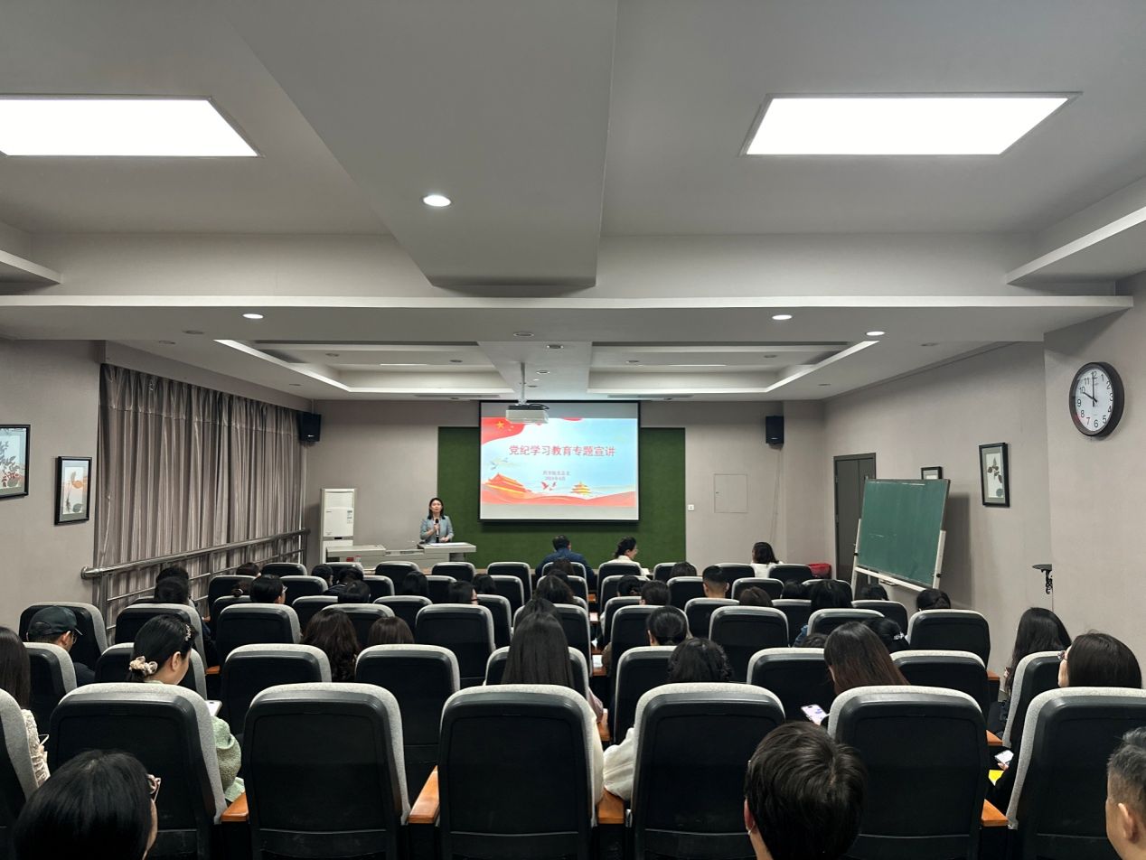 为深入学习贯彻习近平总书记关于党纪学习教育的重要讲话和重要指示精神,增强纪律意识、提高党性修养,4月29日,药学院党总支组织全体教工党员、科室主任在立德楼三层报告厅开展党纪学习教育专题宣讲。会议邀请校纪委委员、学术委员会委员刘春叶教授作专题宣讲报告,由党总支书记王黎主持。