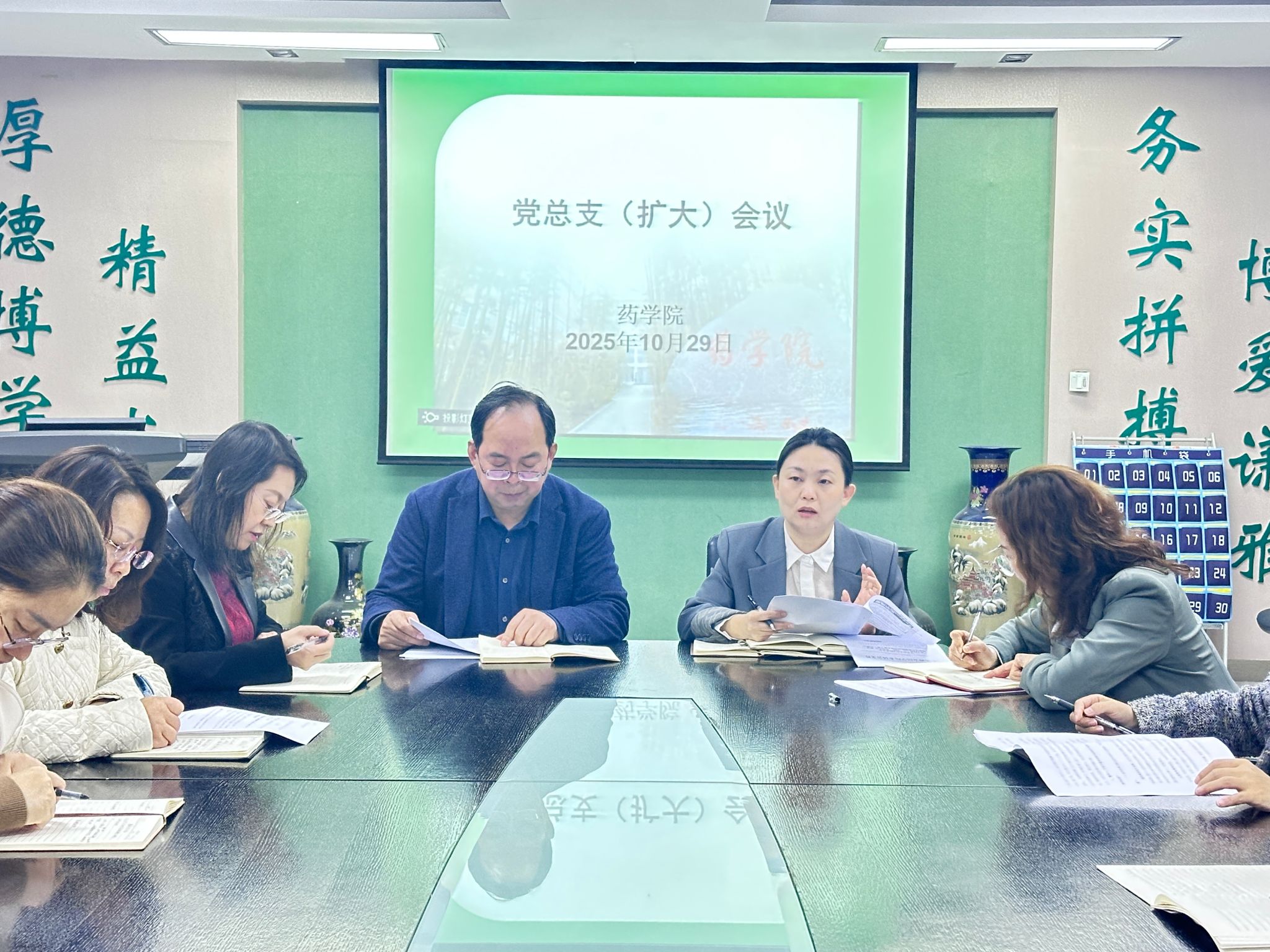 10月29日,药学院召开党总支(扩大)会议暨党课专题讲授,集中传达学习党的二十届四中全会精神、省委常委扩大会议精神及学校党委扩大会议精神,并就学校“十五五”规划编制工作进行解读和动员部署。党总支书记王黎主持会议并讲授专题党课。