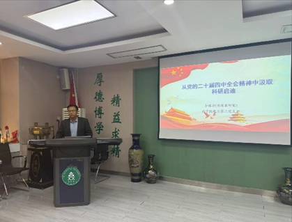 12月10日,李伟泽教授带来党课“从党的二十届四中全会精神中汲取科研启迪”,为支部党员的科研工作进一步明确方向。针对“做什么样的科研”这一命题,李伟泽教授援引习近平总书记有关科技创新重要论述,提出科研要聚焦新质生产力发展,将满足国内需求作为科研出发点和落脚点;科研创新要具备创造性思辨能力和严格的求证方法,不迷信权威、不盲从既有学说,敢于大胆质疑、认真证实;要突破思维藩篱,坚持问题导向,做好调查研究,精准研判,切实推进;要结合学校发展实际,以科研助力特色学科体系建成,提升人才培养与社会服务能力,实现良性循环发展。